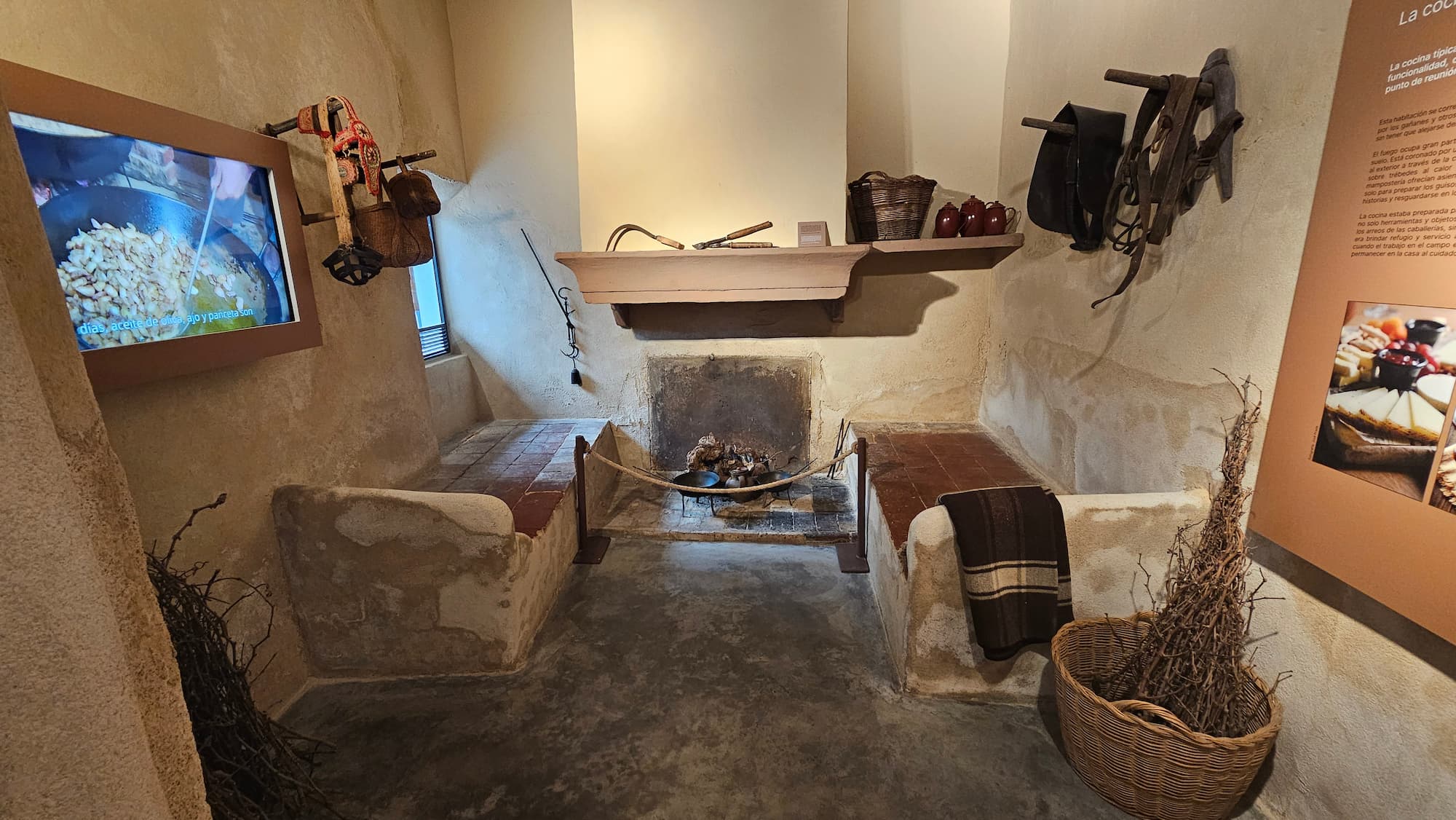 Esta sala ocupa parte de las antiguas cuadras de la casa, por lo que contiene una pajera, un pequeño armario al que caía la paja para alimentar a los animales desde la planta superior, donde se situaba el pajar. A continuación, una típica cocina de gañanes, con la que el visitante se puede adentrar en la gastronomía manchega.