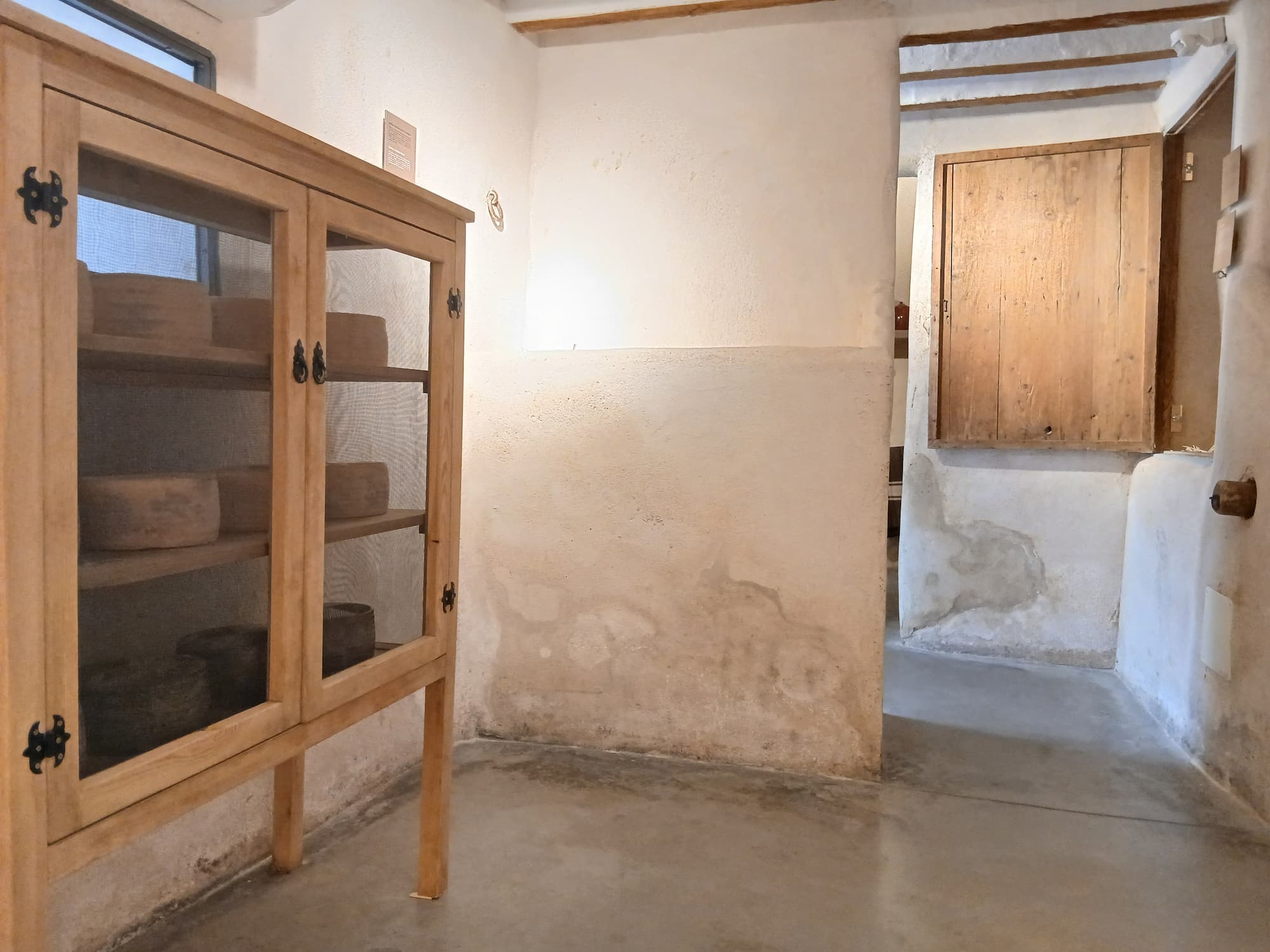 La sala “Pasado, presente y futuro”, ubicada en las antiguas cuadras, nos adentra en el proceso de elaboración del queso. Paneles y audiovisuales explican las fases de elaboración del queso manchego y complementan la exposición de piezas (la pleita y la flor, el entremiso, los moldes y pesas, la lira, el trompo, etc.) que reflejan la evolución de los útiles empleados.