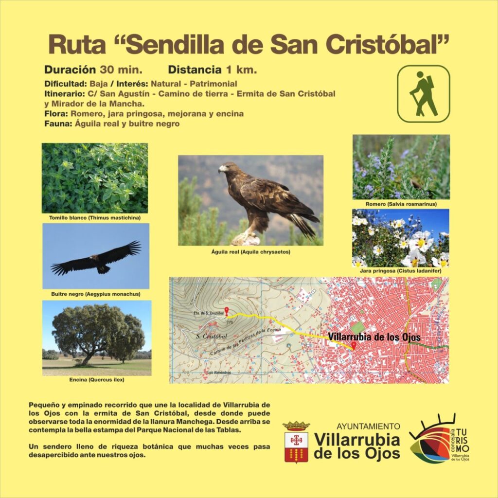 1 kilómetro con excelentes vistas la planicie manchega y el Parque Nacional de las Tablas.
